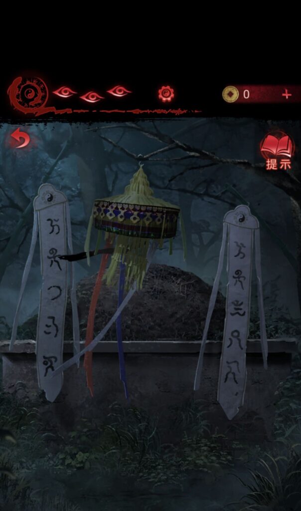 回到墳場方桌,用紙元寶、麵包供奉,依照之前的線索,元寶需依照玄武「心尾之位」擺放,麵包則是放上去系統會隨便灑(?),擺好後會有手伸出來拿供品,接著墳場的霧會散去,還出現一條麵包屑的道路,小奚要去找糖果屋啦!跟著麵包屑走吧!