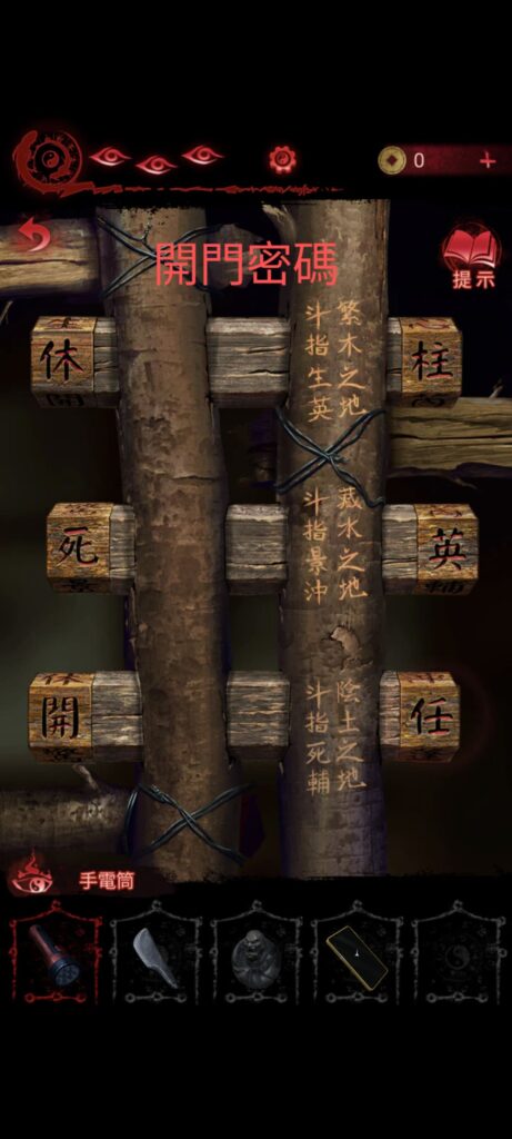 2.根據剛剛密室的大門提示,總共有三處需要使用壬盤,墳場就是其中一個地方。墳場屬於「陰土之地,斗指死輔」,所以在墳場拿出壬盤,把死、輔轉到星星最末端→得到任、開