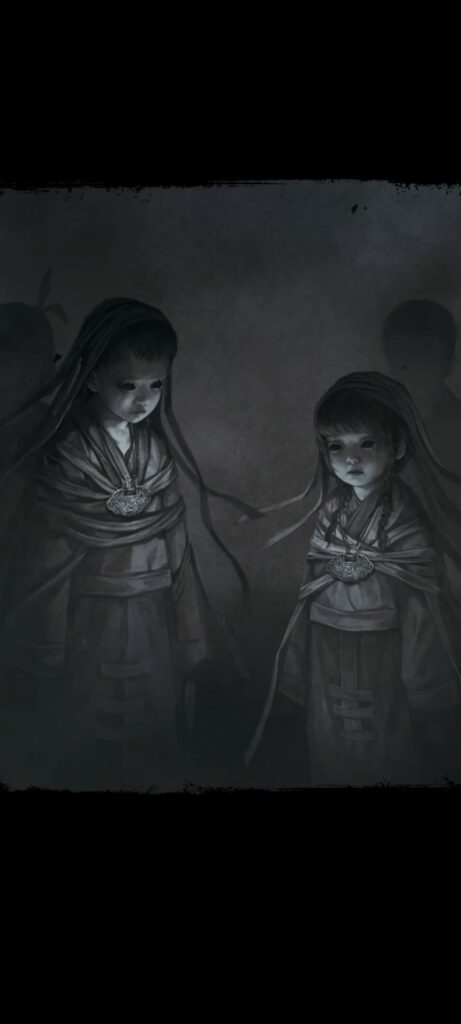 4.根據信紙,弓箭手出外打仗,回來時買了搖鈴想給小女兒。不料連年征戰,妻子擔心丈夫陣亡,四處求神拜佛之下被騙了,邪村(應該就是奘鈴村吧!)以祈福為名義騙走小女兒,事實上把小女兒獻祭,妻子知道實情後覺得對不起丈夫、女兒,上吊自殺,不料死後還被邪村的人用來祭祀。