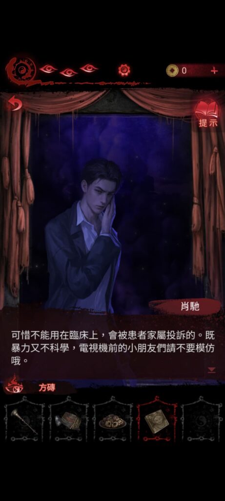 3.大巫賢後方的櫃子要望診小遊戲,先去找找線索,旁邊有一本藍色的冊子《岐黃葬草經》,紀錄了六葬菩薩中的醫學理論,小奚直接說這是巫醫,會氣死正統中醫