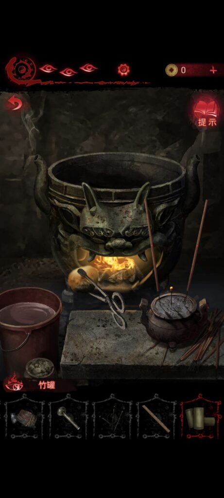 4.用火鐮點燃煉丹爐火,選擇鉗子,自動把石碗放進煉丹爐,開始小遊戲。隨便選擇一炷香燒,燒完選擇取出石碗,一點極開始煉丹就有算時間了,所以我抓香快要燒完的時候,判定成功,不要真的等到香燒完整根,也不用三炷都點→得到仙藥